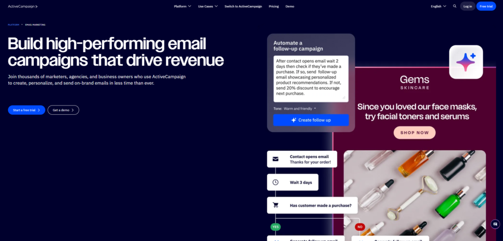 ActiveCampaign is powerful but can become expensive as your list grows.