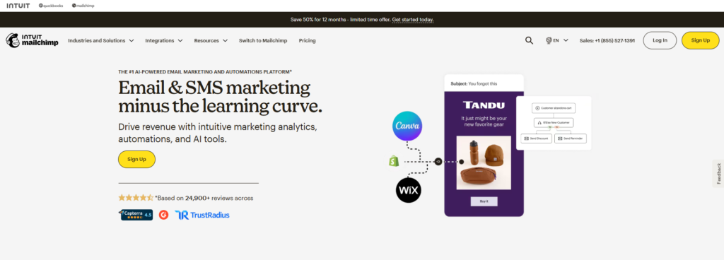 You can create landing pages and signup forms directly inside Mailchimp to capture leads. These pages can be used for promotions, lead magnets, or product launches without needing another tool.