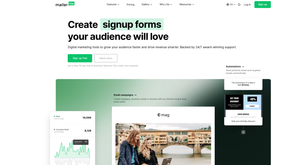 If you don’t want to deal with complex tools, MailerLite makes everything fast and simple.
