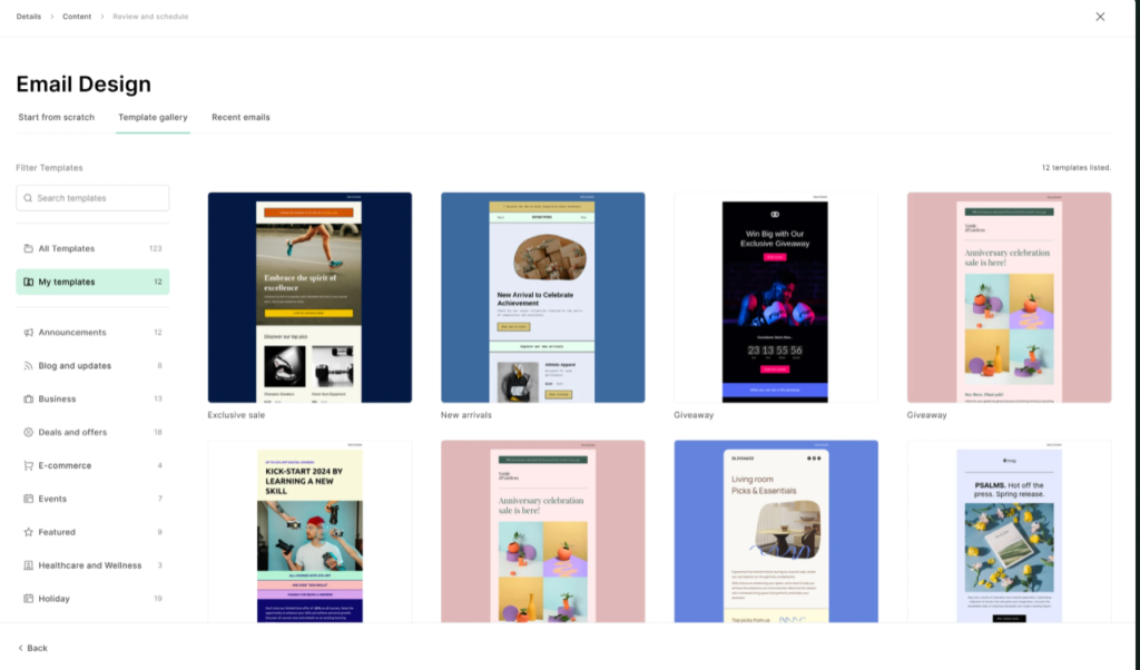 MailerLite focuses on simple and modern templates that are easy to customize. The drag-and-drop editor is fast and beginner-friendly, allowing users to create professional emails quickly. The templates are also optimized for mobile devices.
